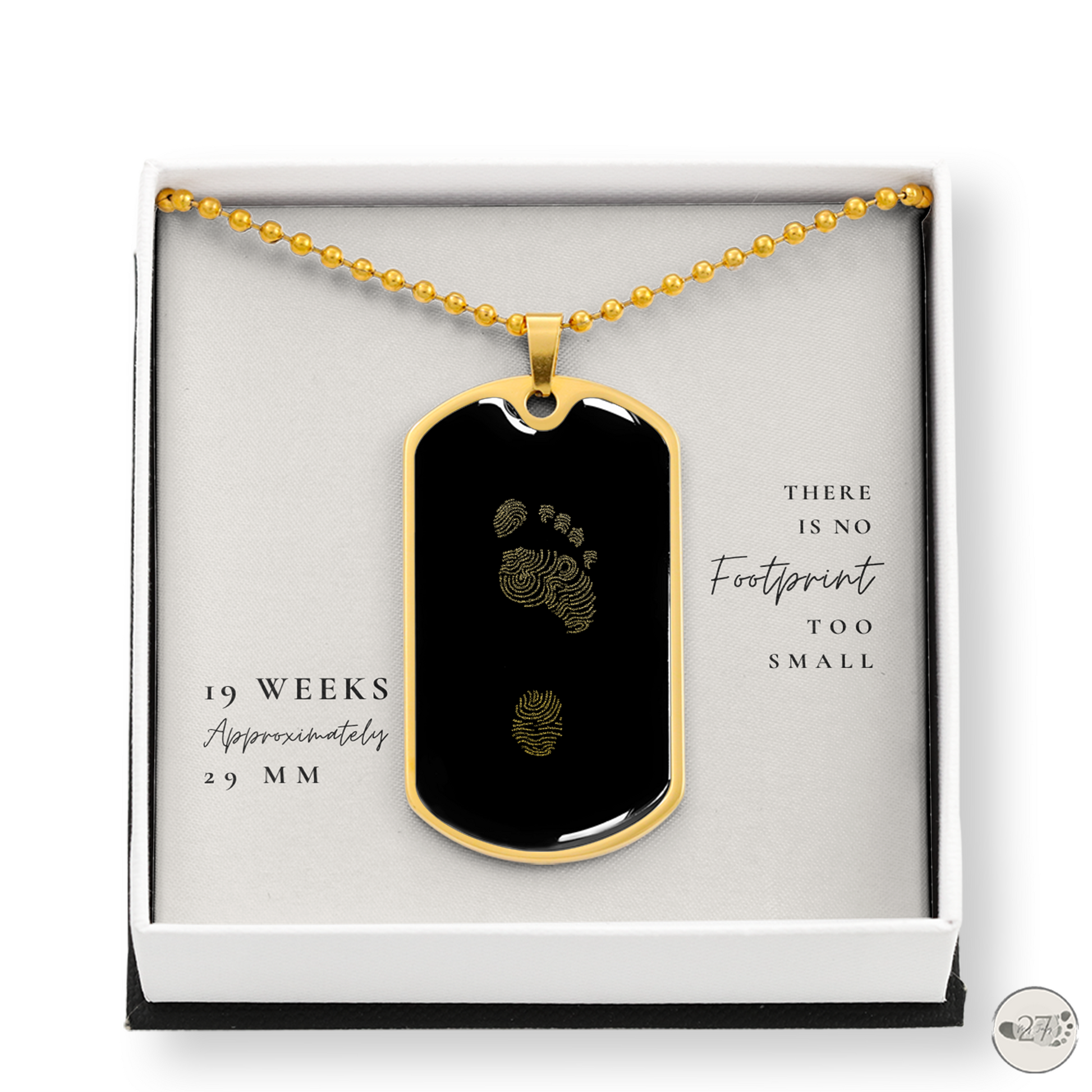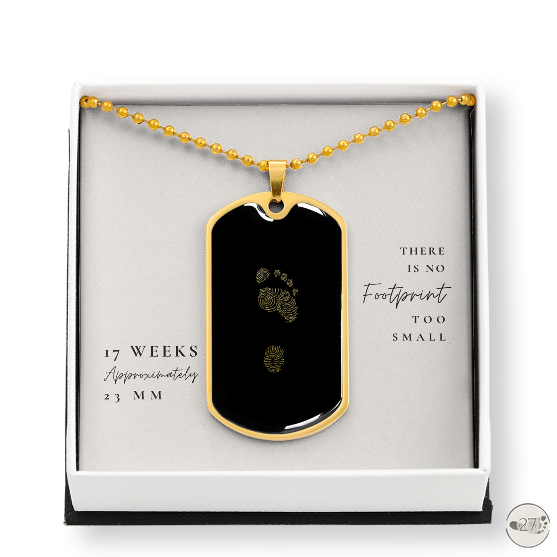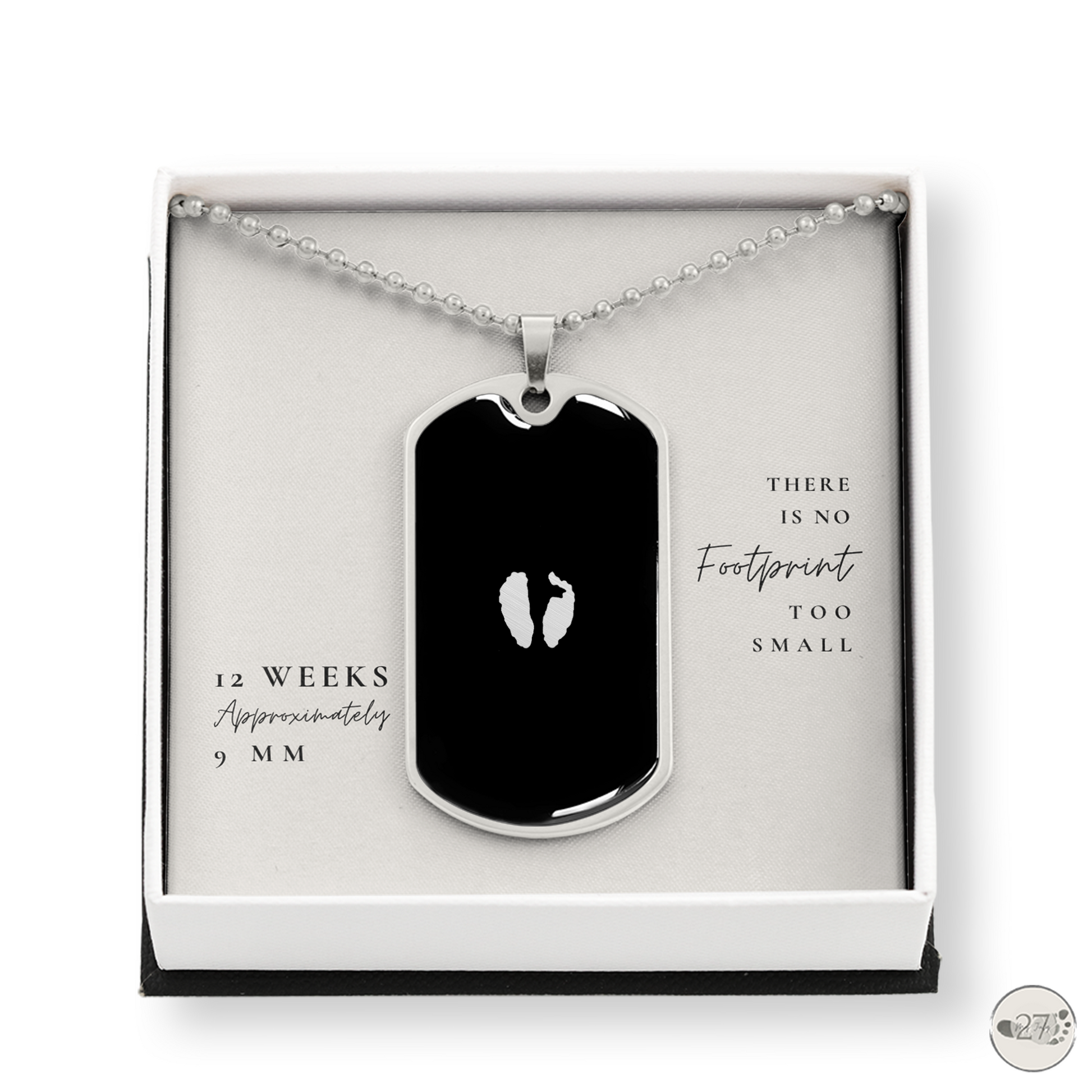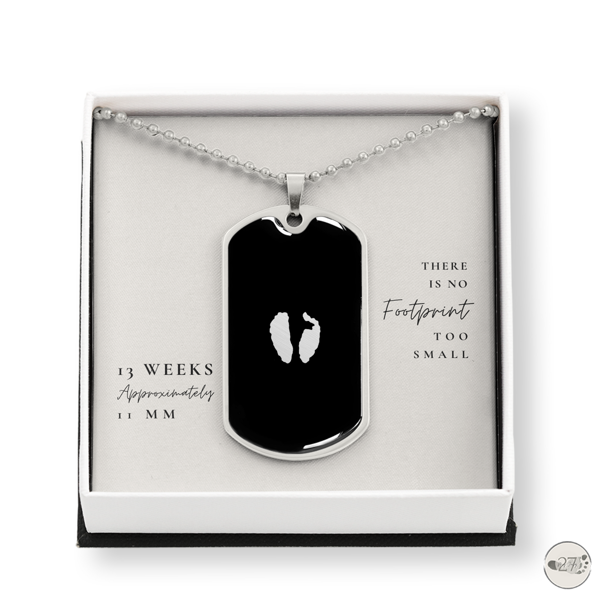 - Dog Tag Style Pendant Size: 1.1” x 2" (29mm x 51mm)