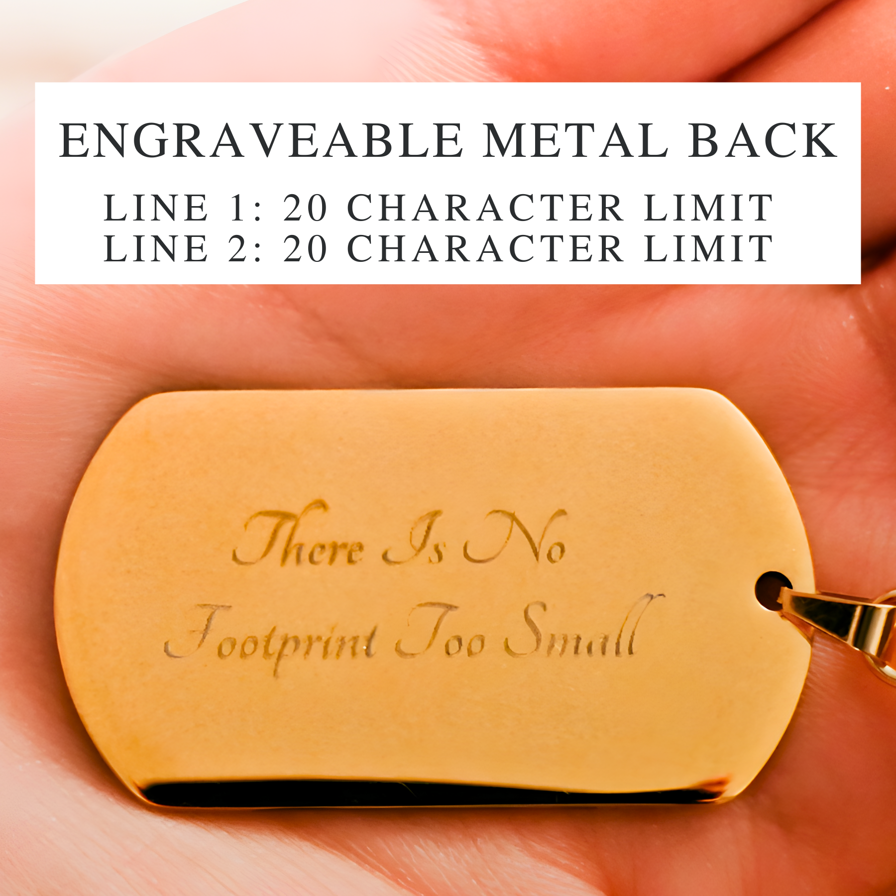 - Engravable Pendant Back- 2 lines of text, 20 characters each (spaces included). This beautifully features your little one's name, birth date, or a few words by which you would like to remember their life.