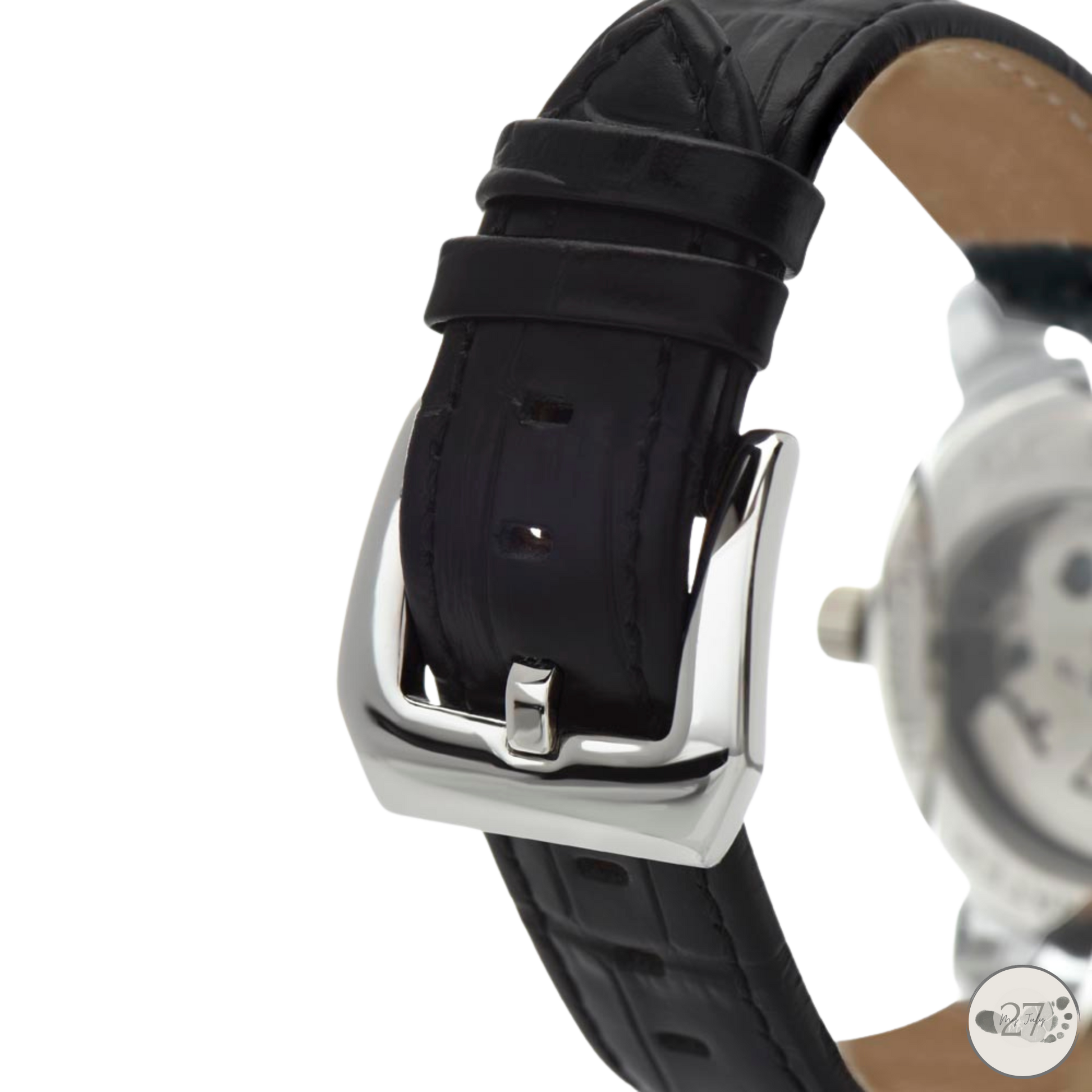 We are proud to offer this high-end piece, which conveys both contemporary and timeless elegance. It features a genuine leather strap, high-durability hardened mineral glass, and is rated 3 ATM for water resistance. It's captivating openwork dial (otherwise known as a skeleton dial) provides a glimpse into intricate mechanics.