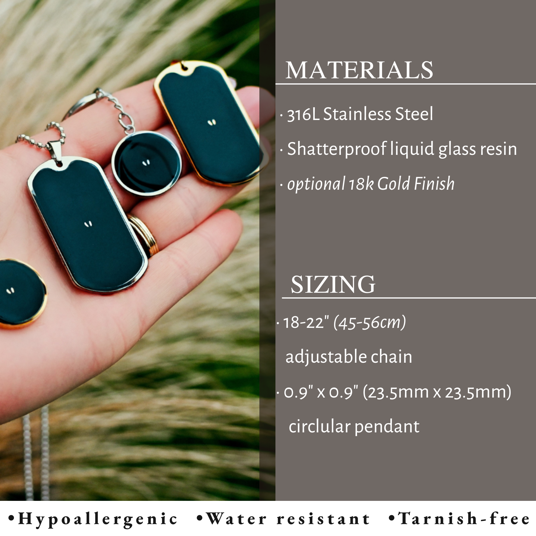 • Dog Tag Pendant: 1.1” x 2" (29mm x 51mm