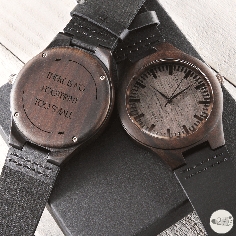 YourJuly27 Men's Wooden Watch is a thoughtful and meaningful gift for a grieving father who has experienced the pain of pregnancy loss. The back of your watch is engraved with the quote above, along with an engraving of authentic footprints to represent your little one(s).